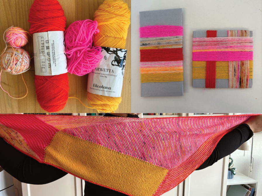 Udgangspunktet for mit sjal-projekt var, at jeg ville bruge nogle af de garnrester, jeg havde i forvejen.
