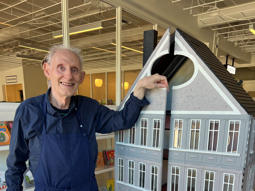 Manden hedder Per, og mange af bibliotekets brugere kender ham rigtig godt, fordi han arbejder i Bibliotekscaféen. Ud over at være skrap til cafe latte, så har Per en rigtig god hukommelse. Han kan huske, at dukkehuset stod i børnebiblioteket dengang Ballerup Bibliotek havde adresse på Baltorpvej. I 1970! Dengang var Per en knægt på 13 år, og han husker tydeligt, at dukkehusets størrelse gjorde stort indtryk på ham. Det var simpelthen det største dukkehus, han nogensinde havde set! Der er med andre ord nok mindst tre generationer af Ballerup-børn, der har leget med dukkehuset, og vi får tit spørgsmål om, hvor det er henne.