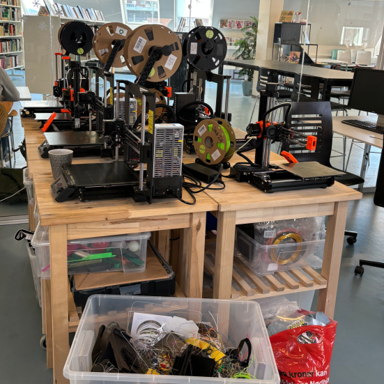 Maskiner: Laserskærer, vinylskærer og 3D printer.