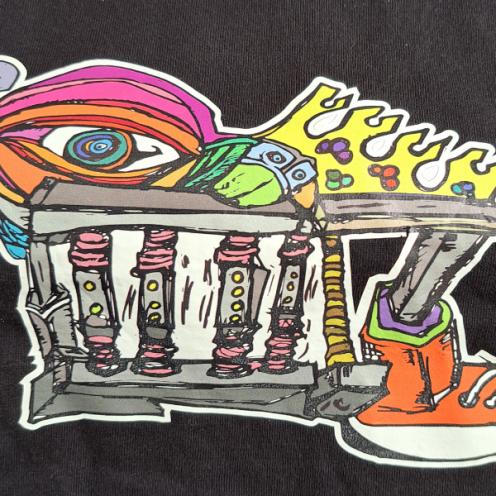 Eksempler på vinylskæring Dekorér en skammel Tryk på et stofnet Kunstig Intelligens på T-shirt Håndtegnet kunst på t-shirt Brikker til øl-entusiasten Reflekser på en jakke